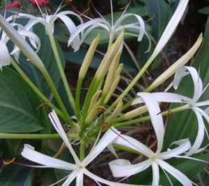 为石蒜科植物文殊兰的果实。植物形态详"罗裙带"条。形态特征与生境分布多年生草本,高约1米。须根多数。鳞茎粗壮,圆柱形,为多数叶鞘所包。叶多数。聚生于茎顶;叶片舌状披针形,长可达1米,叶脉平行,基部抱茎,全缘。花茎直立,粗壮,伞形花序顶生,有花10余朵,佛焰苞长约10厘米,2裂至基部,花白色,芳香。鳞茎、根、叶均入药,四季可采,鲜用或晒干。分布于广东、福建、湖南、台湾等地。生于河边、低洼地草丛中,或栽培于庭院。