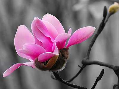 曾几何时,辛夷成为文人墨客的喜爱之物,纷纷入诗入画。如白居易《戏题木兰花》:“紫房日照胭脂拆,素艳风吹腻粉开。怪得独饶脂粉态,木兰曾作女郎来。”清朝两代帝师翁同龢罢官返抵故里,于庭院中栽植玉兰树,构“玉兰轩”,楼上为藏书之处,轩内为待客之所,与宾朋雅士吟诗论文、赏书品画。另外,他还喜欢食用以玉兰花和面混合用油炸制成的饼,盛赞其“香韵颇胜”。明代画家沈周有《辛夷墨彩图卷》;清初著名画家恽寿平晚年亲绘一幅《辛夷图》,图中一朵朵辛夷花传神、灵动,透出一派无瑕傲立之姿,实为传世佳作;近代著名画家张其翼曾创作《黄鹂辛夷图》,辛夷花错落有致,花瓣内白外紫,风姿绰约。